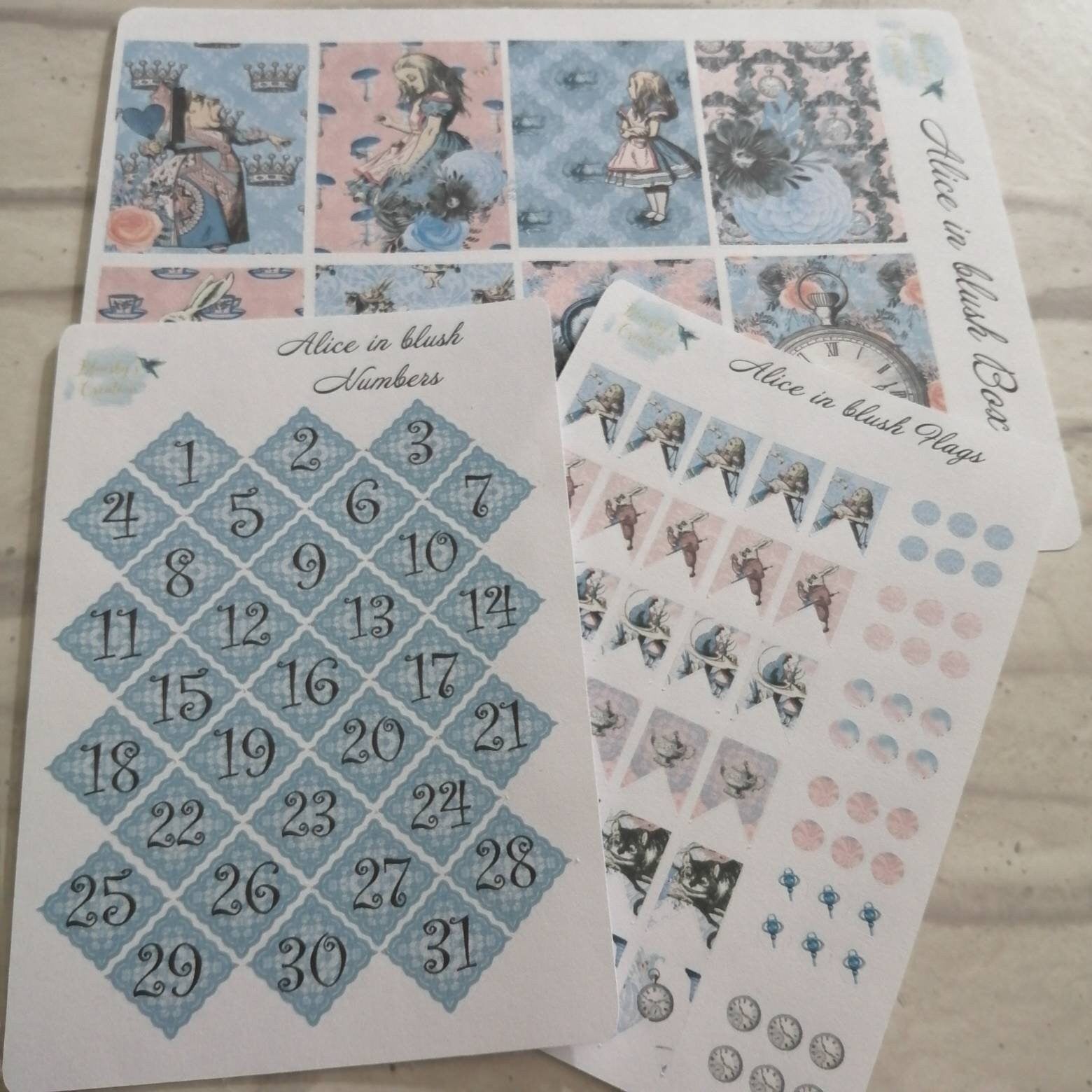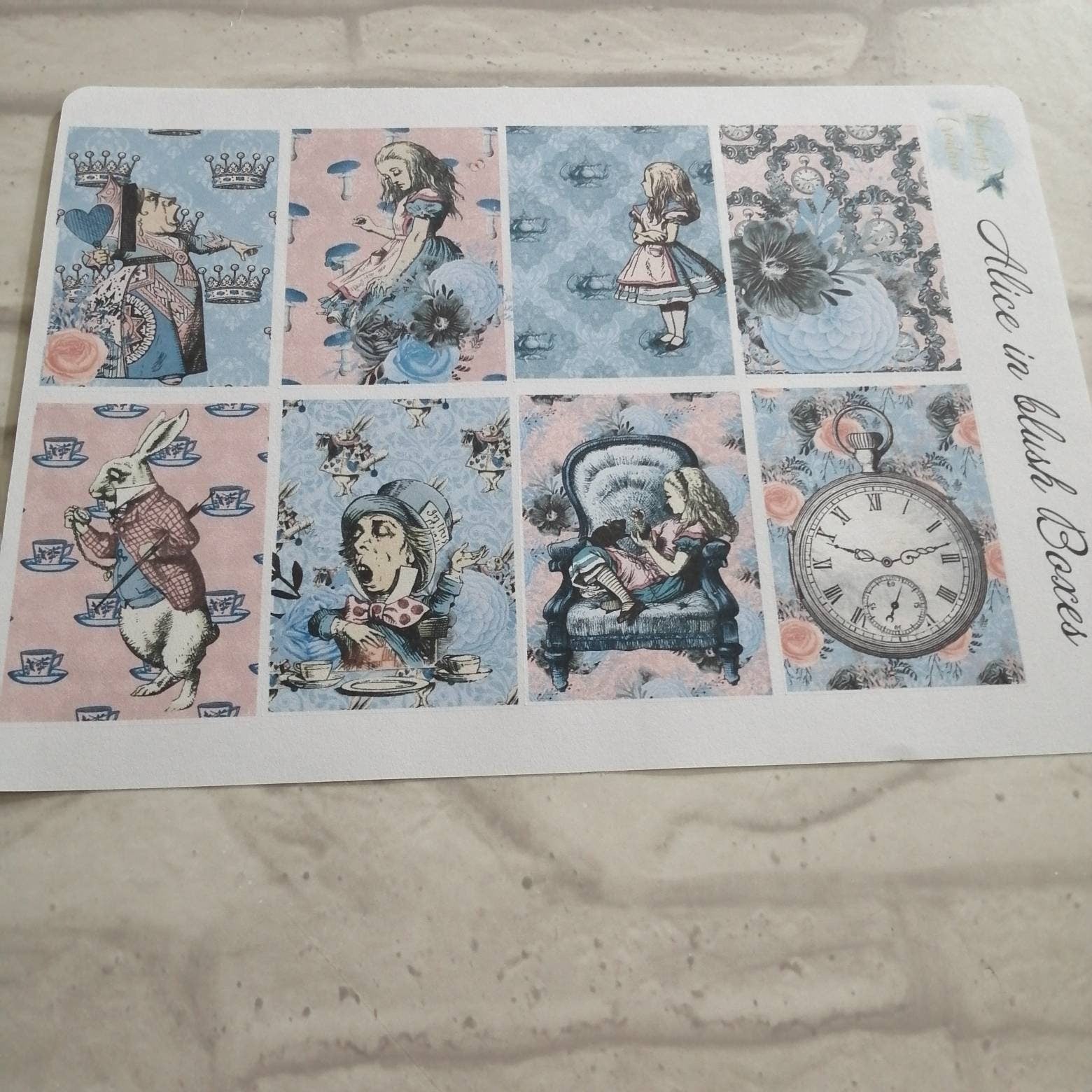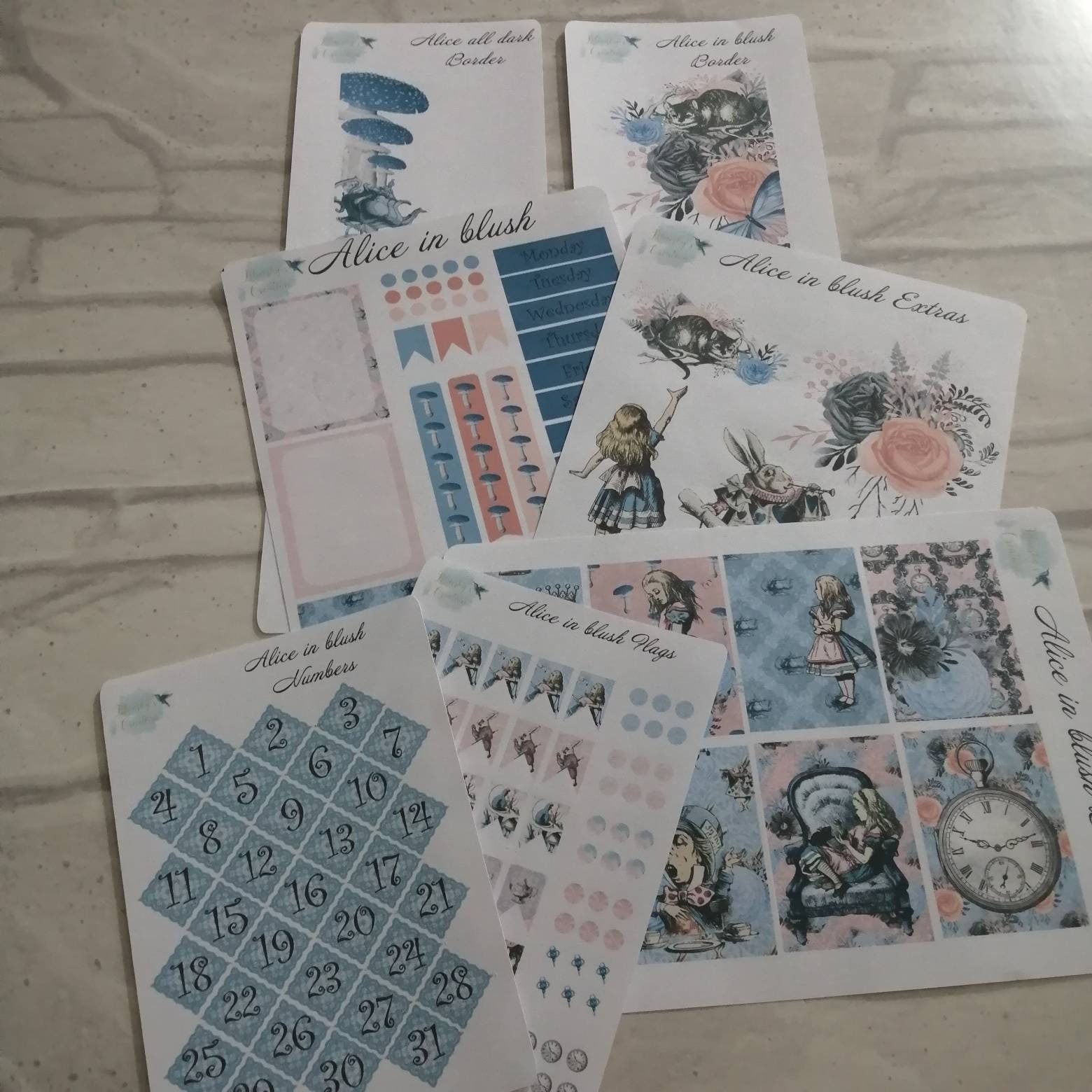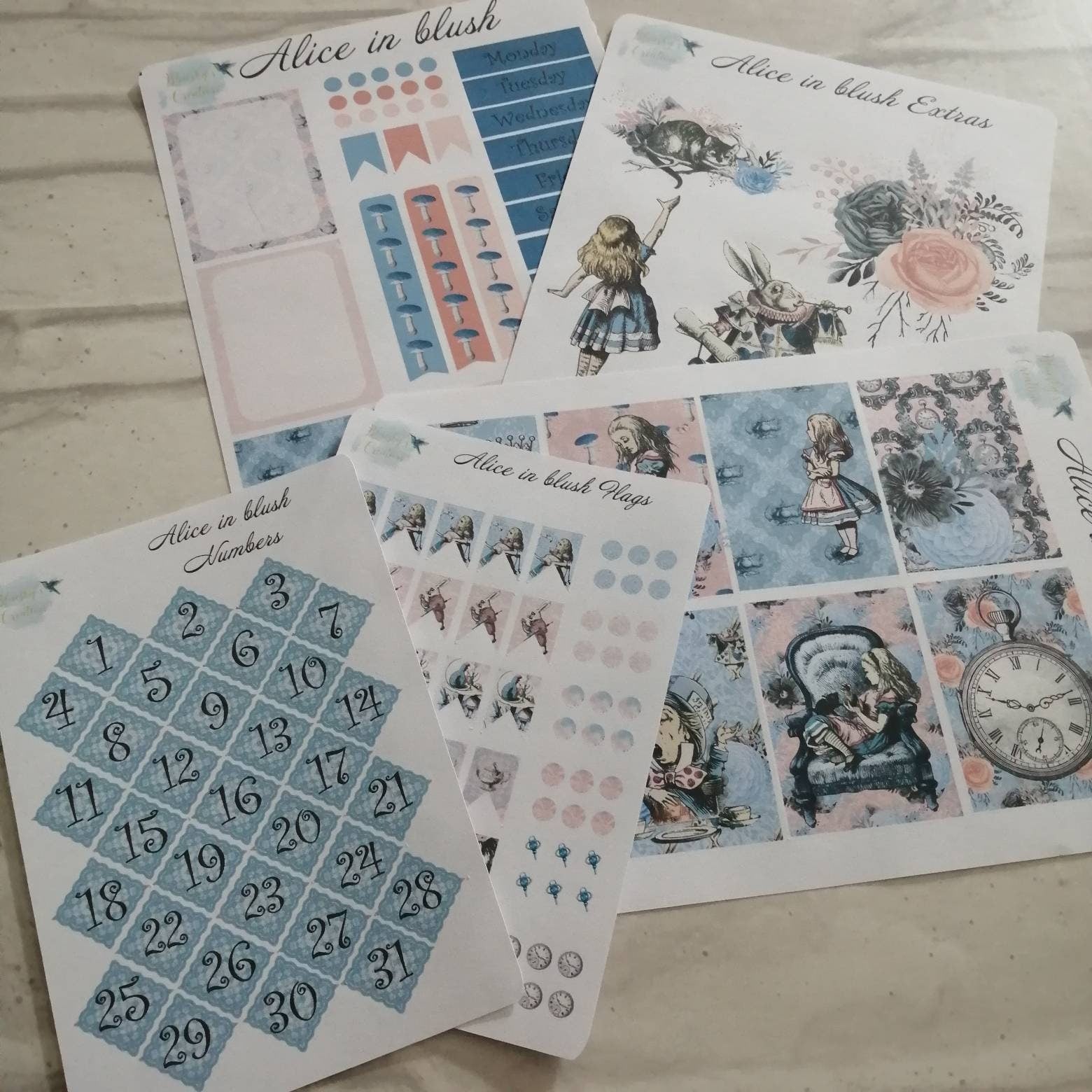 Alice in wonderland blush pink and blue weekly planning sticker diary daily planner set