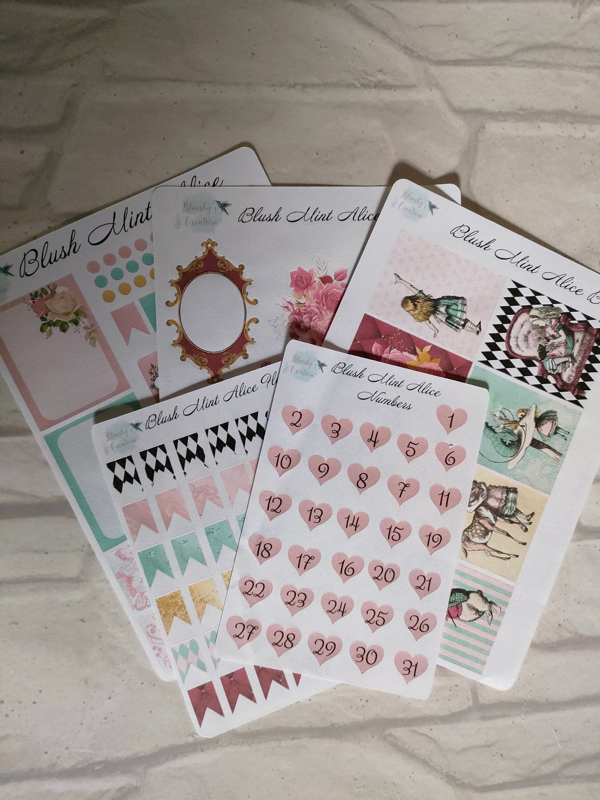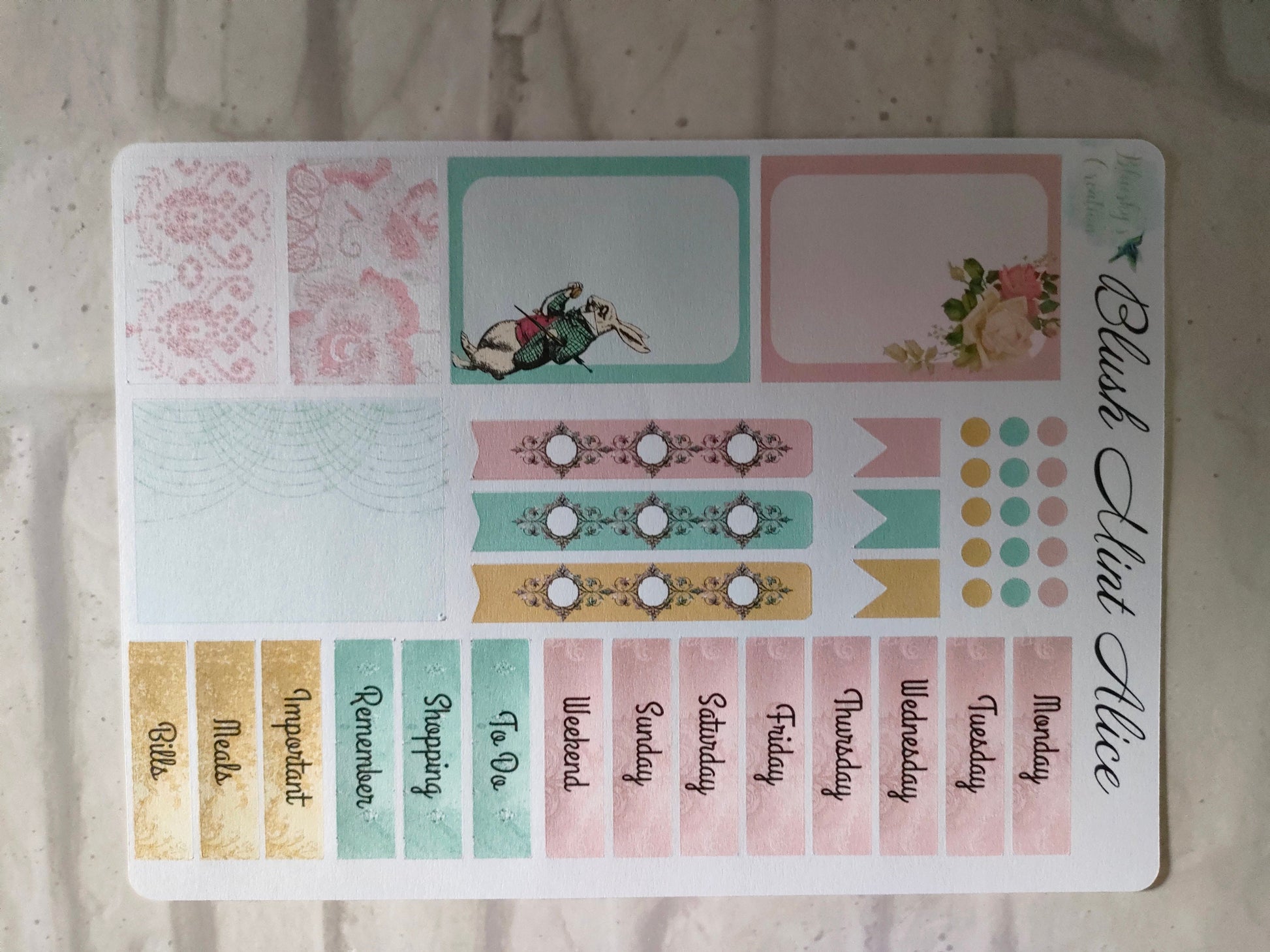 Alice in Wonderland Blush Pink Kit | Weekly Planning Sticker | Daily Diary Planner Set