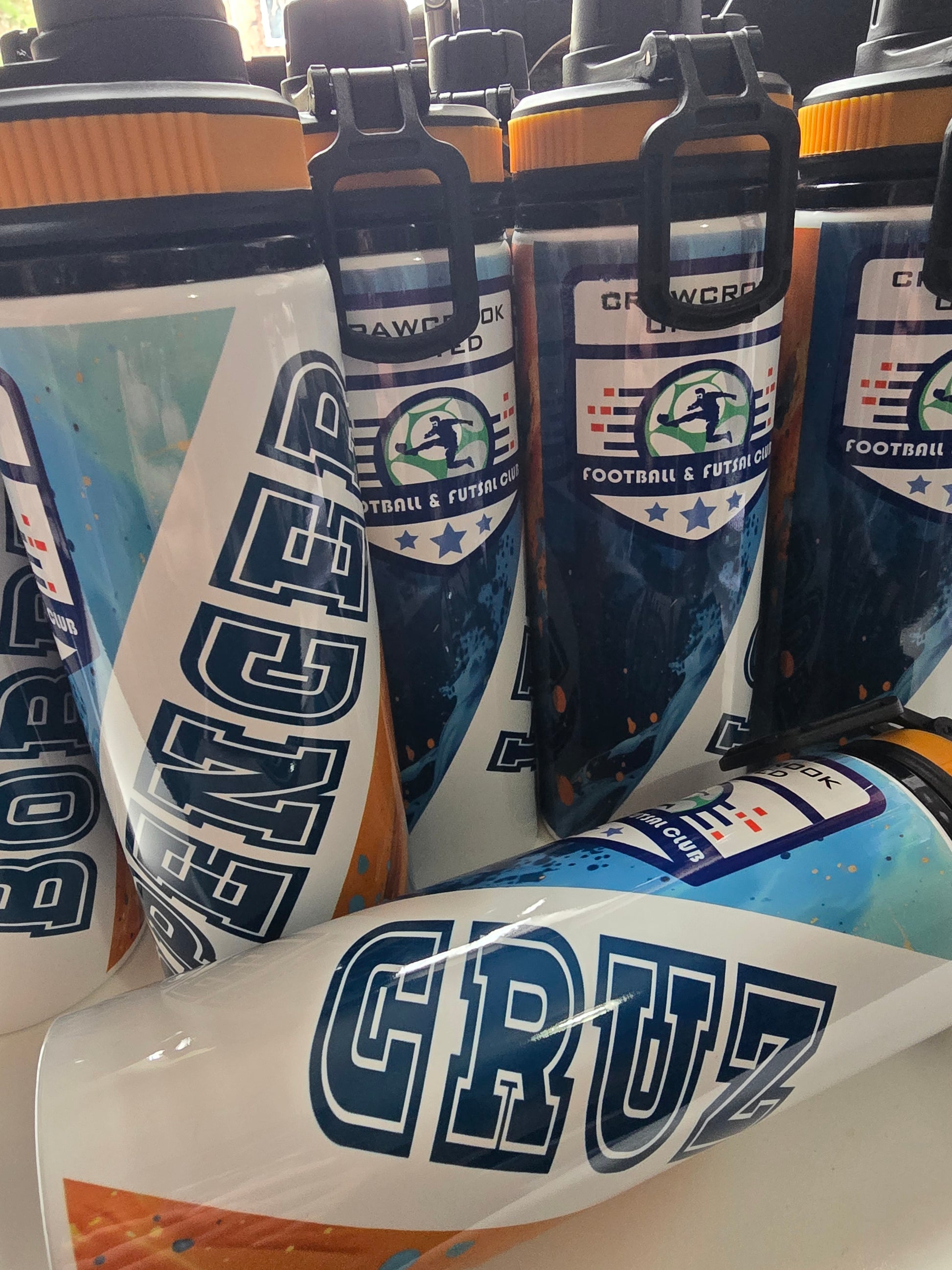 The bottles are made of alluminum and are food safe. These ARE NOT dishwasher safe and please be aware the in rim of there bottle there is a seal to keep them from leaking this seal is removable so when washing please make sure the seal gets replaced if taken out to wash.