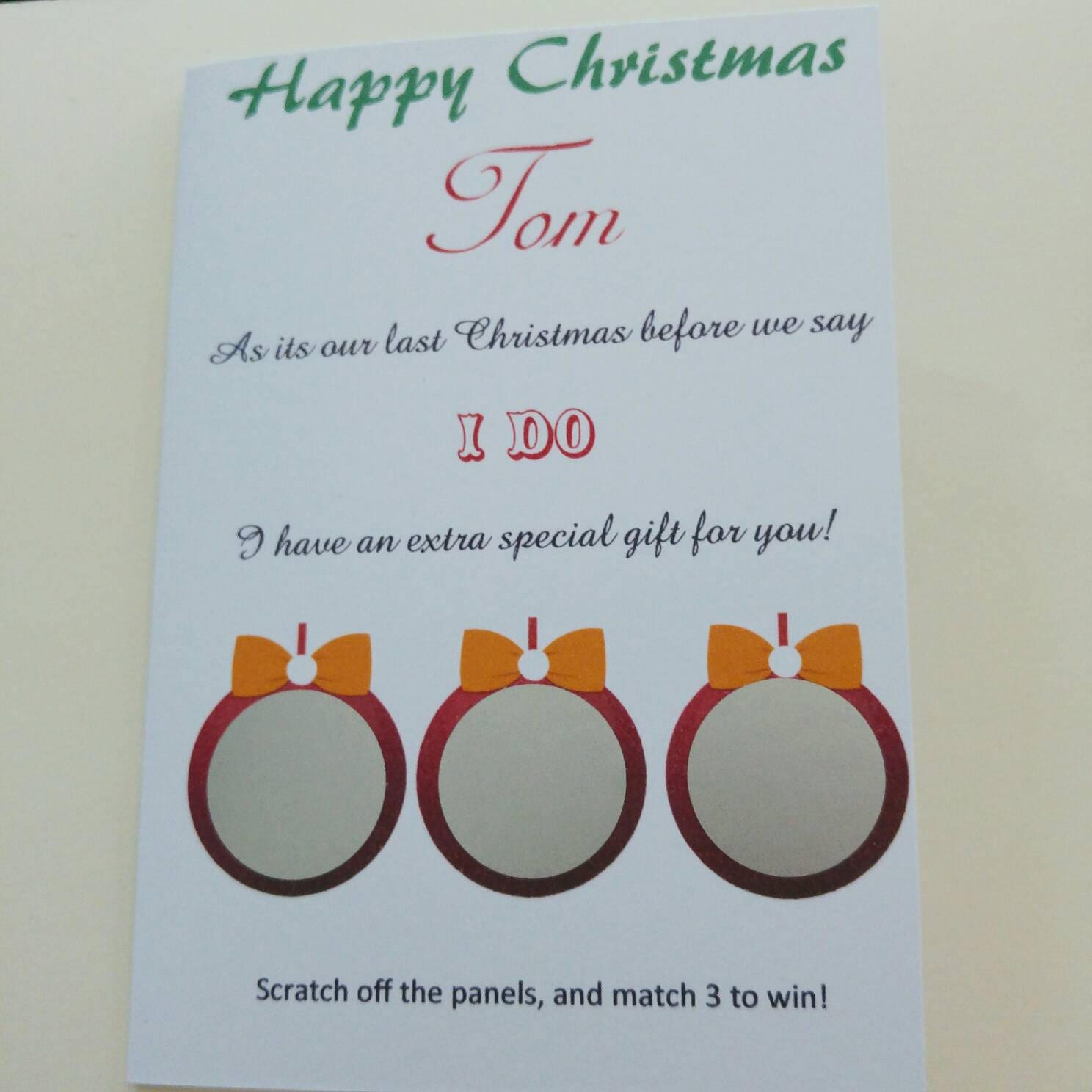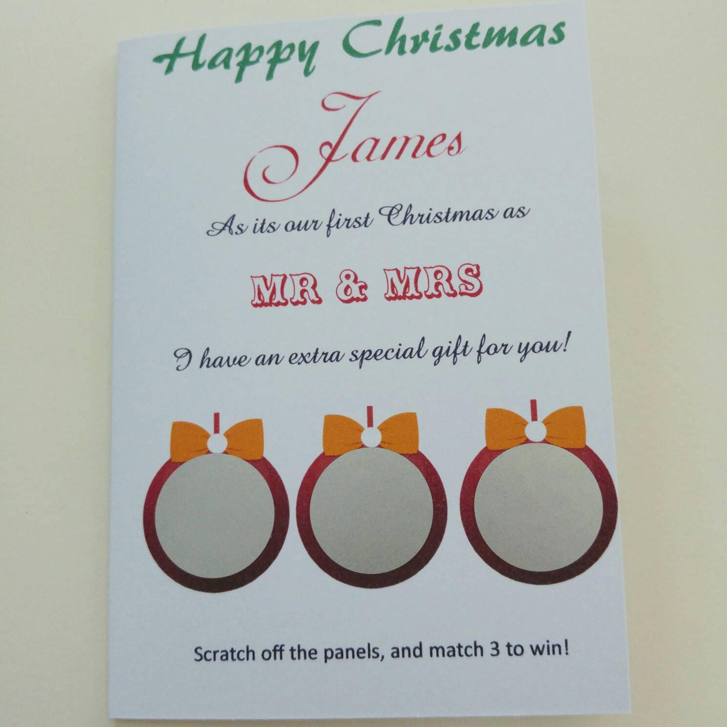 Can be made as a before you say I do, first Christmas as Mr and Mrs or you first ever Christmas