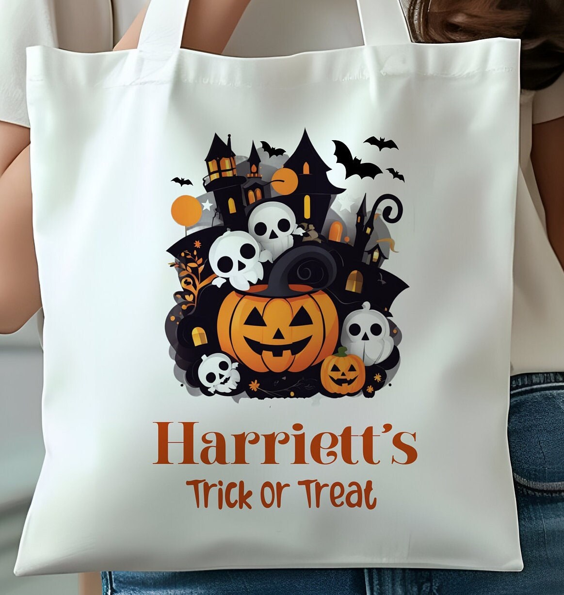 A super cute little Trick or Treat Personalised Bat tote bag perfect to add to any costume on halloween,