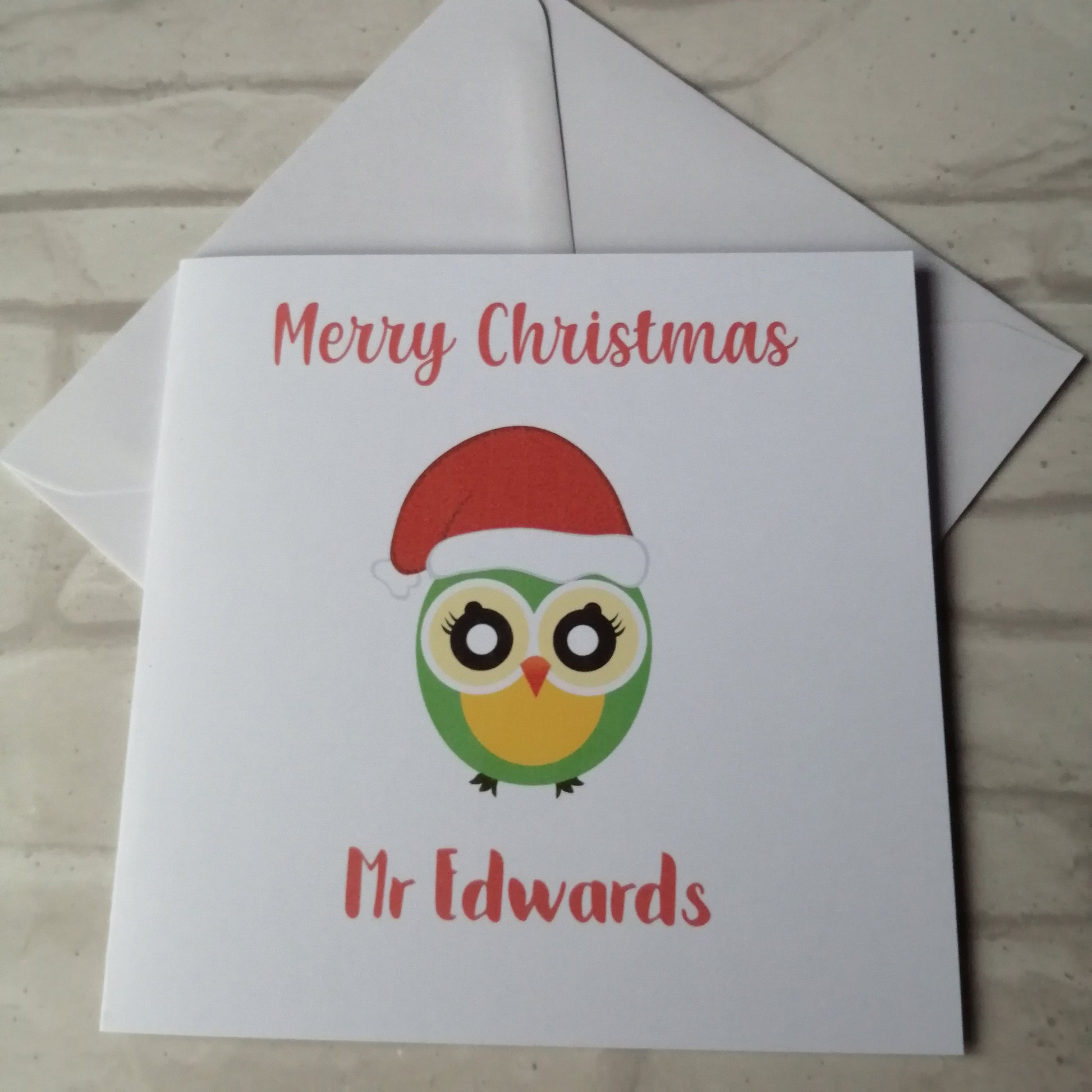 Green Owl Teacher Christmas Card