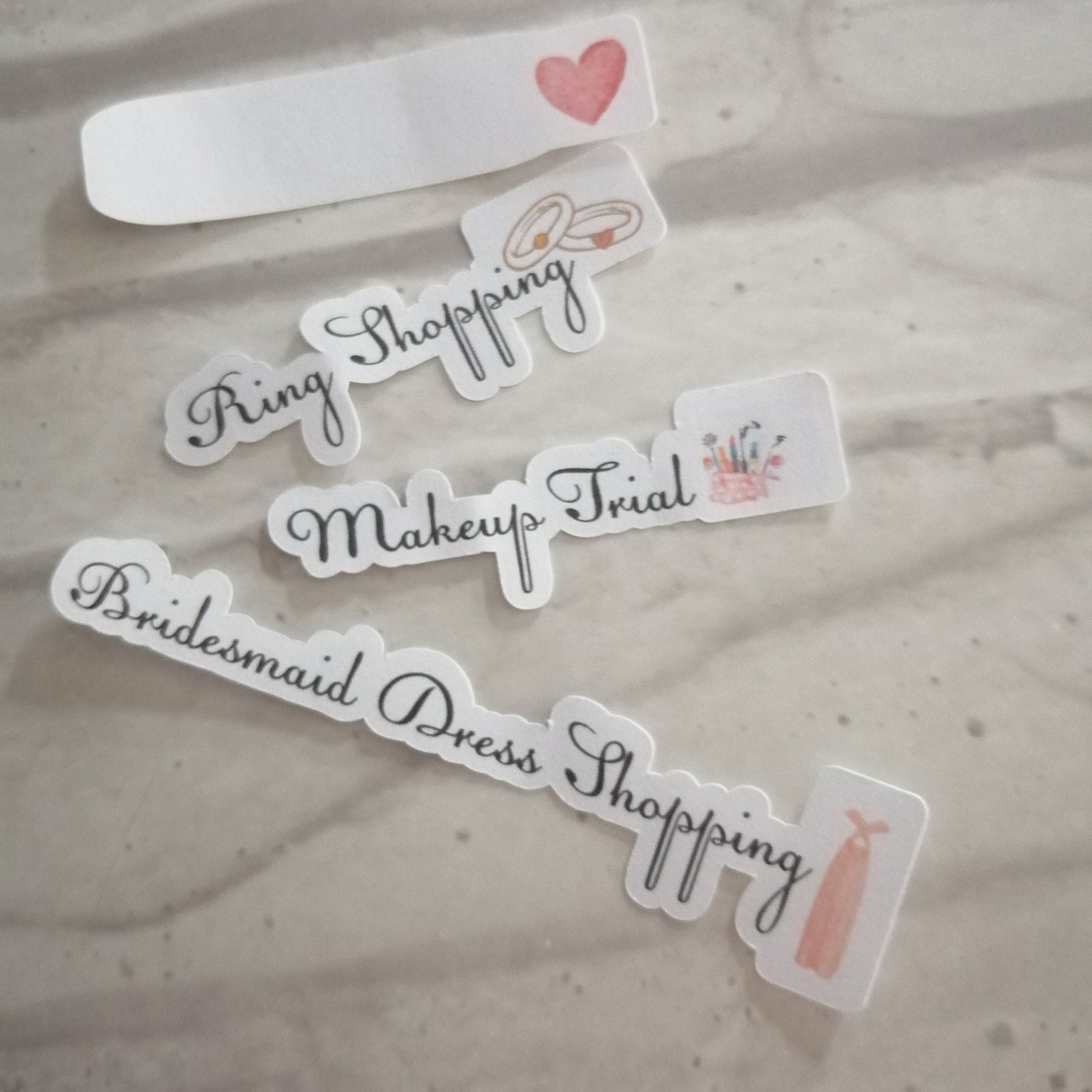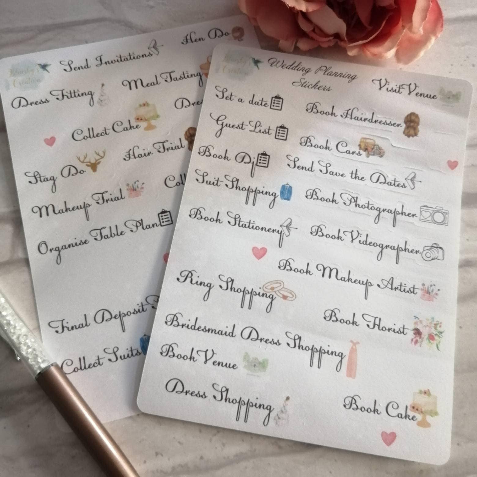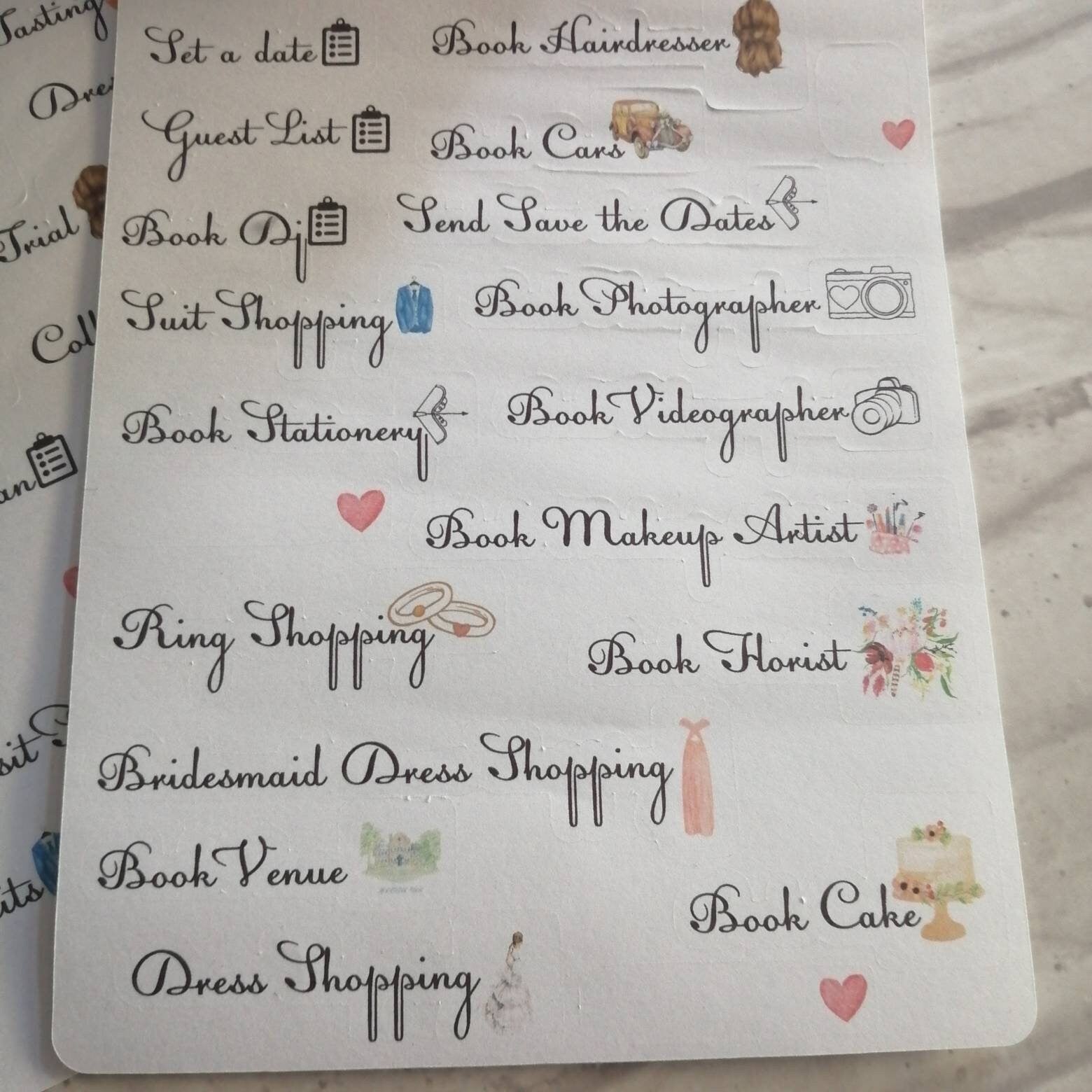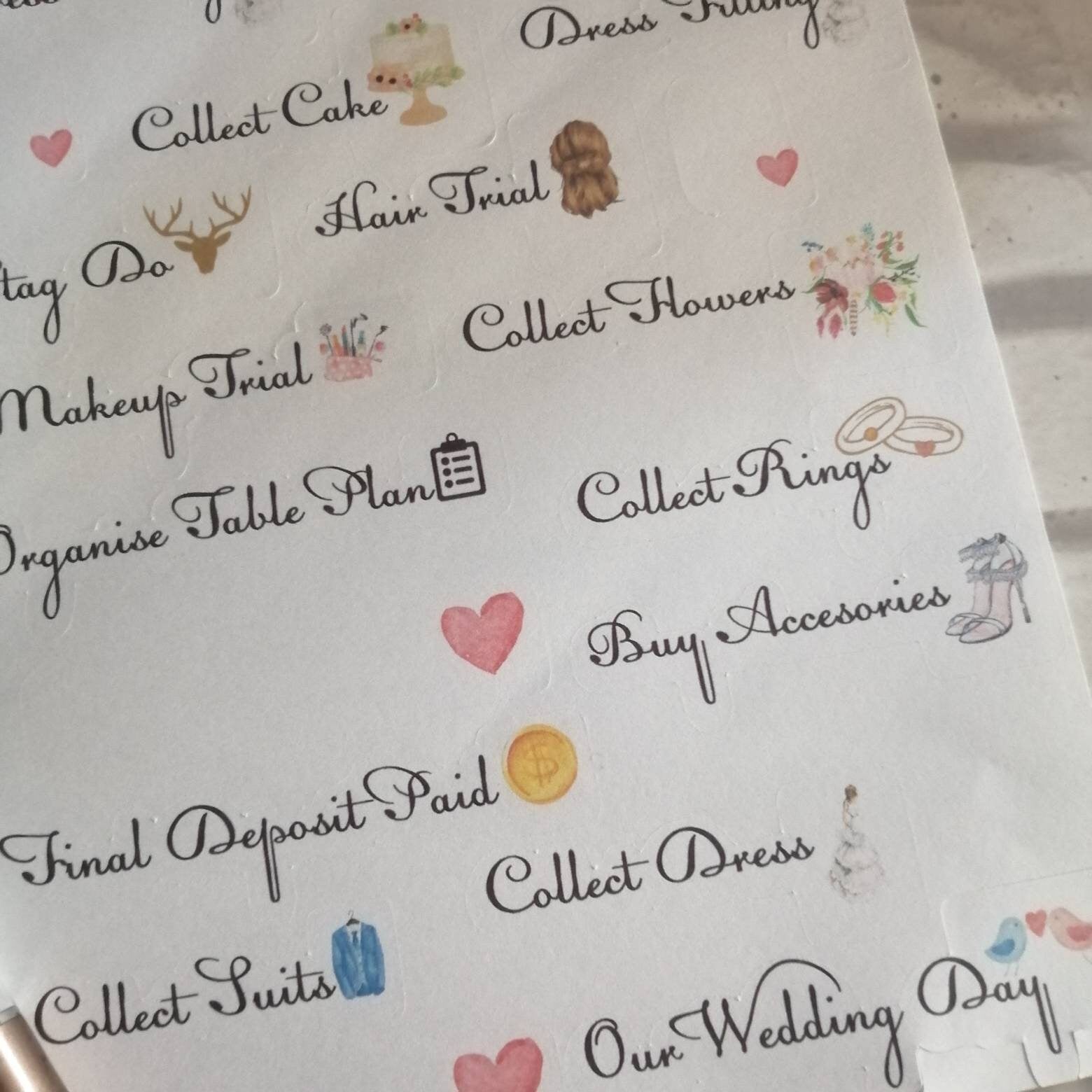 This is a set of 42 stickers on white matt stickers perfect to add to a wedding planner or diary, with little milestones along the way of your planning journey.