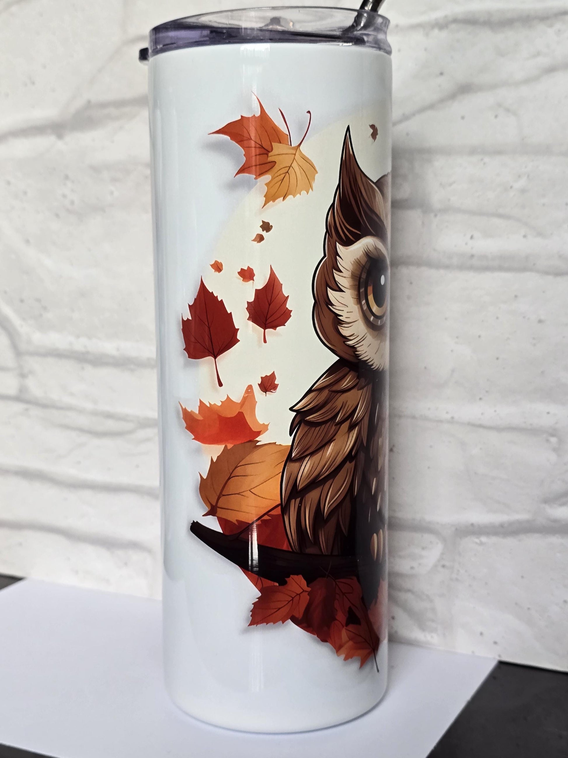 20oz Skinny drinks tumbler. Woodland Owl Design