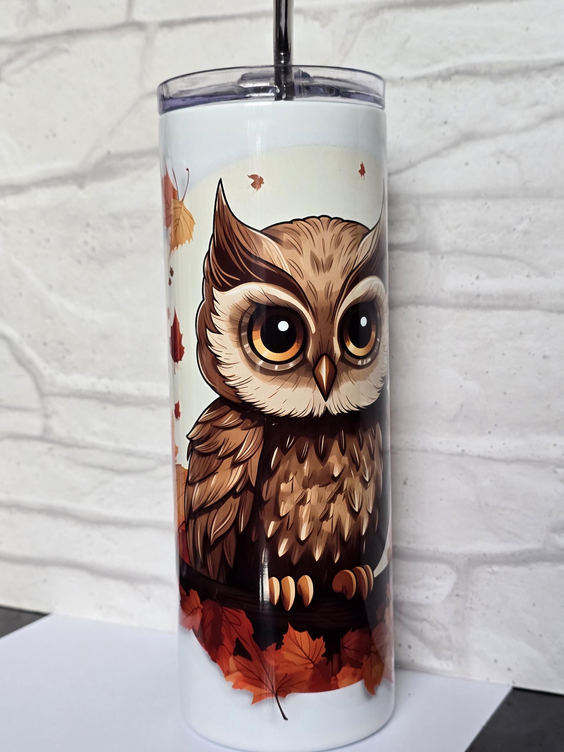20oz Skinny drinks tumbler. Woodland Owl Design